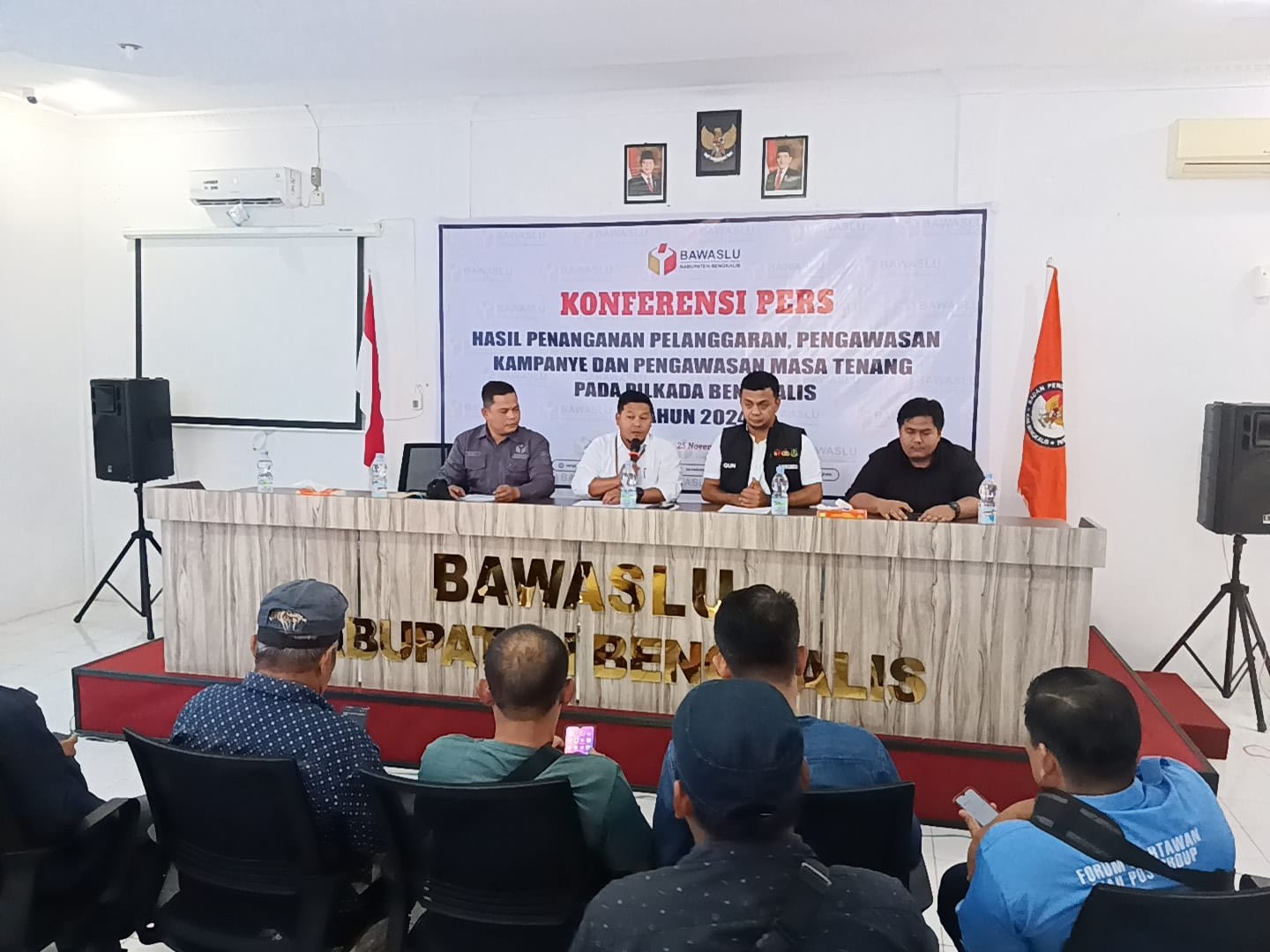 Konferensi pers bersama awak media yang dipimpin Ketua Bawaslu Bengkalis Usman dan turut dihadiri Sentra Gakkumdu dari unsur Kepolisian, Kejaksaan Negeri Bengkalis Bawaslu Bengkalis itu, diselenggarakan di ruang pertemuan Kantor Bawaslu Bengkalis, Jl. Antara Bengkalis.