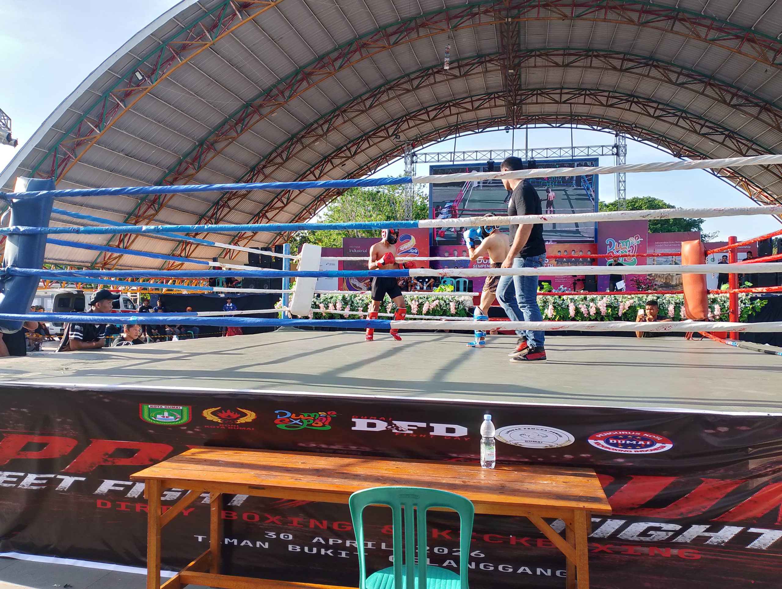 Di saat yang sama, Agus Gunawan,S.Sos (Kadis Pariwisata) juga berkesempatan memberikan hadiah bagi pemenang dalam pertandingan tinju tersebut.