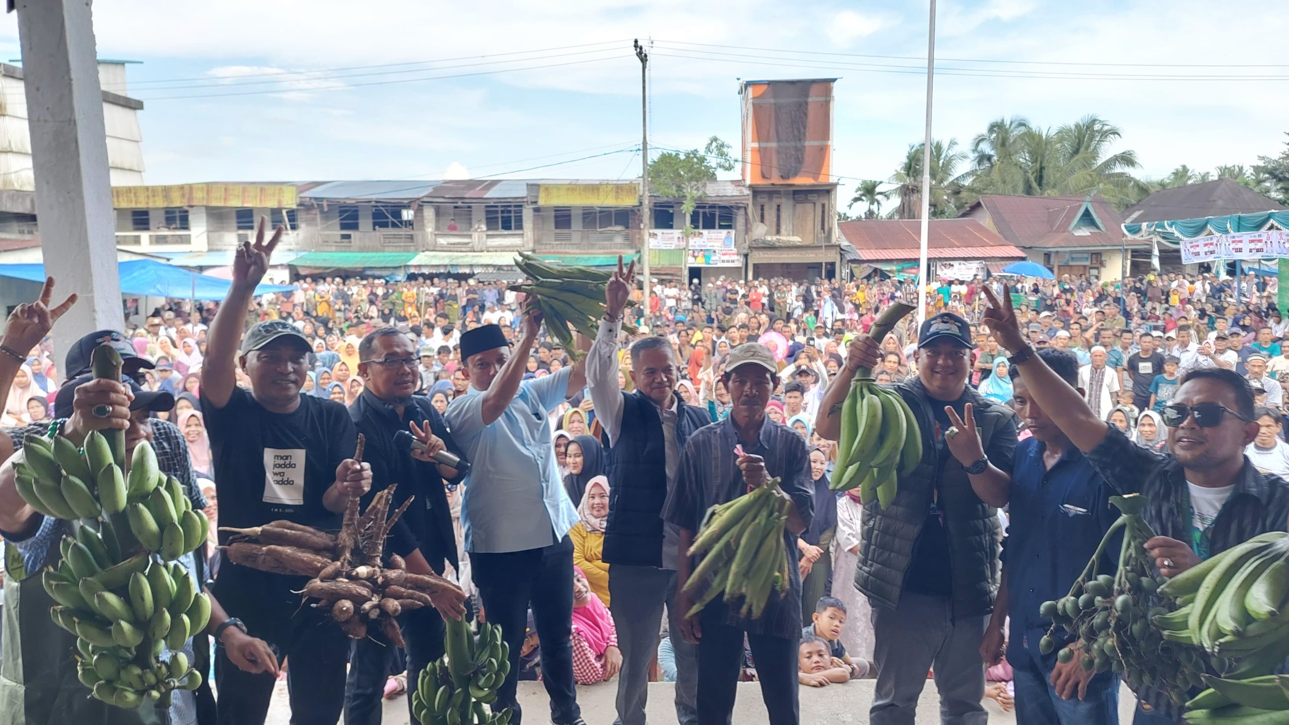 Indragiri Hilir (Wasiat24.com) – Sejumlah petani di Kecamatan Sungai Batang, Kabupaten Indragiri Hilir (Inhil) mengantarkan hasil panen perkebunannya kepada calon Wakil Bupati nomor urut 2, H.Dani M Nursalam saat melaksanakan Kampanye Dialogis, pada Rabu (13/11/2024).