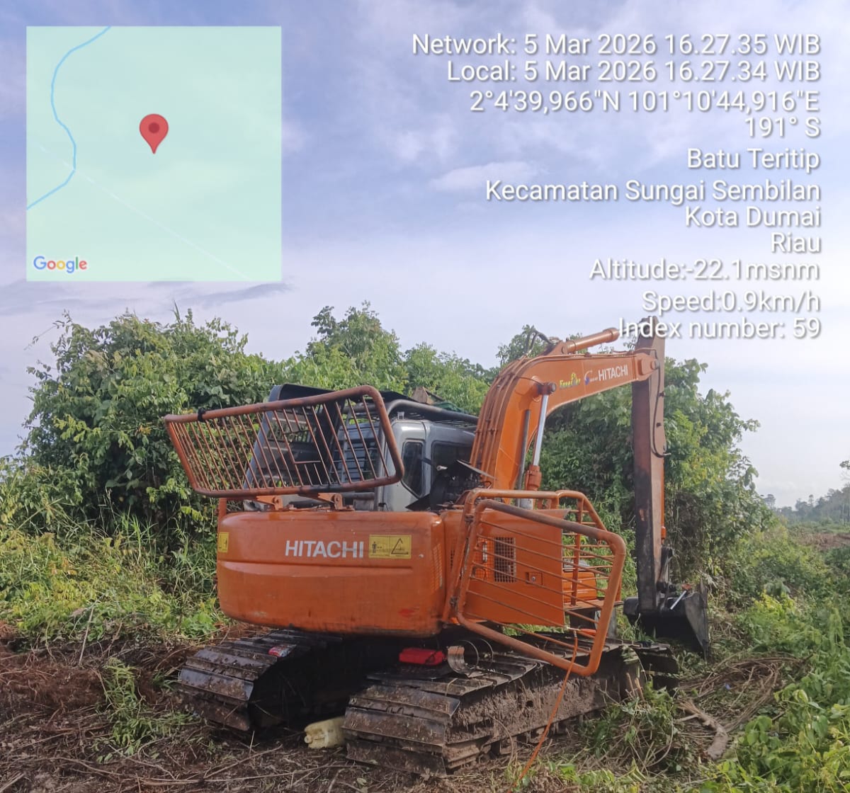 Menurut Edriwan, berdasarkan hasil investigasi internal ALUN Riau, sebuah alat berat jenis excavator diduga telah masuk ke kawasan hutan produksi tetap yang berada dalam izin konsesi PT Suntara Gaja Pati (SGP) untuk melakukan aktivitas land clearing guna pembukaan kebun kelapa sawit. Lokasi tersebut berada pada titik koordinat N 02°05’05,83″ dan E 101°11’24,035″.