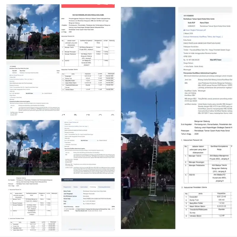 Kota Solok (Wasiat24.com) — Aroma dugaan permainan dalam proyek pengadaan kembali mencuat. Tender proyek revitalisasi Taman Syech Kukut dengan nilai lebih dari Rp15 miliar kini menjadi sorotan tajam, setelah muncul indikasi kuat adanya praktik tidak sehat dalam proses lelang yang melibatkan Kelompok Kerja (Pokja) pemilihan.