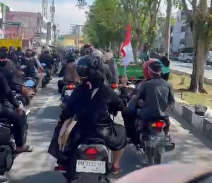 Iring iringan di kawal oleh pihak pengamanan Polres Dumai agar tertib dan aman bagi pengendara lainnya.