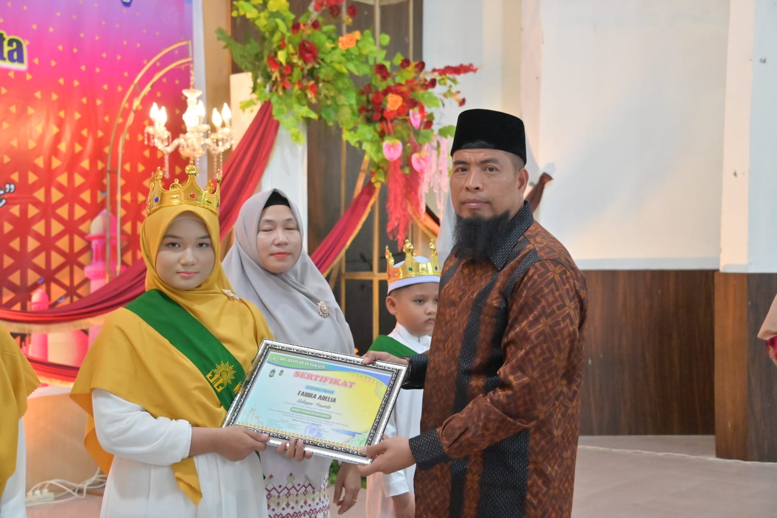 “Terima kasih kepada bapak asisten Bupati Bengkalis yang sudi hadir di acara wisudanya anak murid kami,” ucap Kepsek Nilaksum.