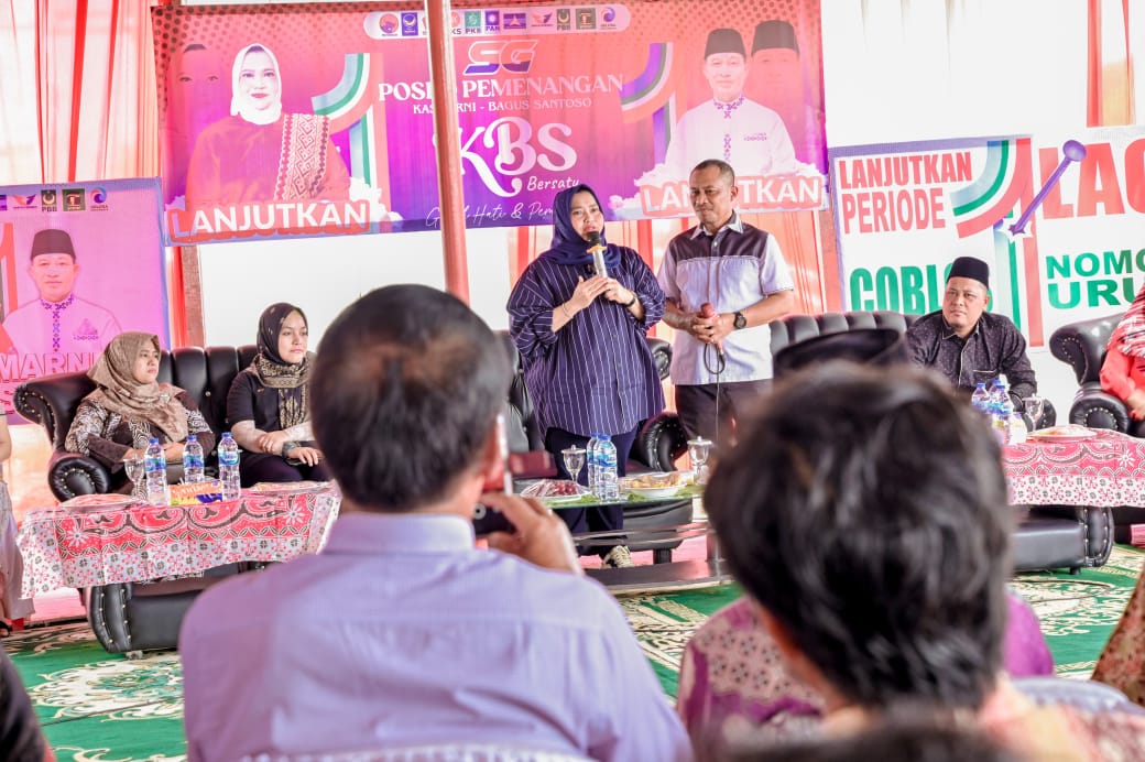 “Oleh karena itu, bapak – ibuk, saya mohon doa dan dukungan agar kami dapat melanjutkan program bermasa. Dan jangan lupa bapak Ibu tanggal 27 November 2024 nanti bawa sanak famili dan keluarga untuk datang ke TPS. Lihat ada gambar paling cantik dan coblos satu kali saja, jangan dua kali karena vatal,” ujar Kasmarni,