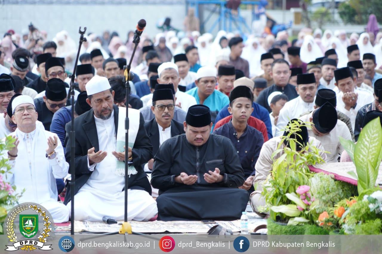 Bengkalis (Wasiat24.com) – Ketua DPRD Kabupaten Bengkalis, Septian Nugraha, bersama ribuan masyarakat melaksanakan Shalat Idul Adha 1446 Hijriah/2025 Masehi di Lapangan Tugu, Bengkalis, Jumat (6/6/2025).