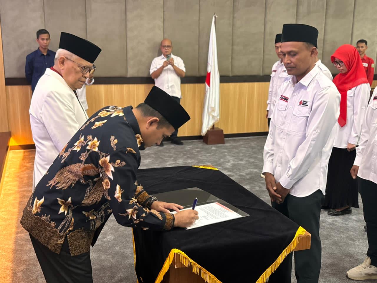 Selanjutnya dilakukan pembacaan Surat Keputusan PMI Provinsi Sumatera Barat Nomor 017/01.04.00/SKAP/ORG/X/2025 tentang Susunan Kepengurusan PMI Kabupaten Solok Masa Bakti 2025–2030, yang dibacakan oleh Ketua Bidang Organisasi PMI Sumatera Barat, Aim Zein, S.H.