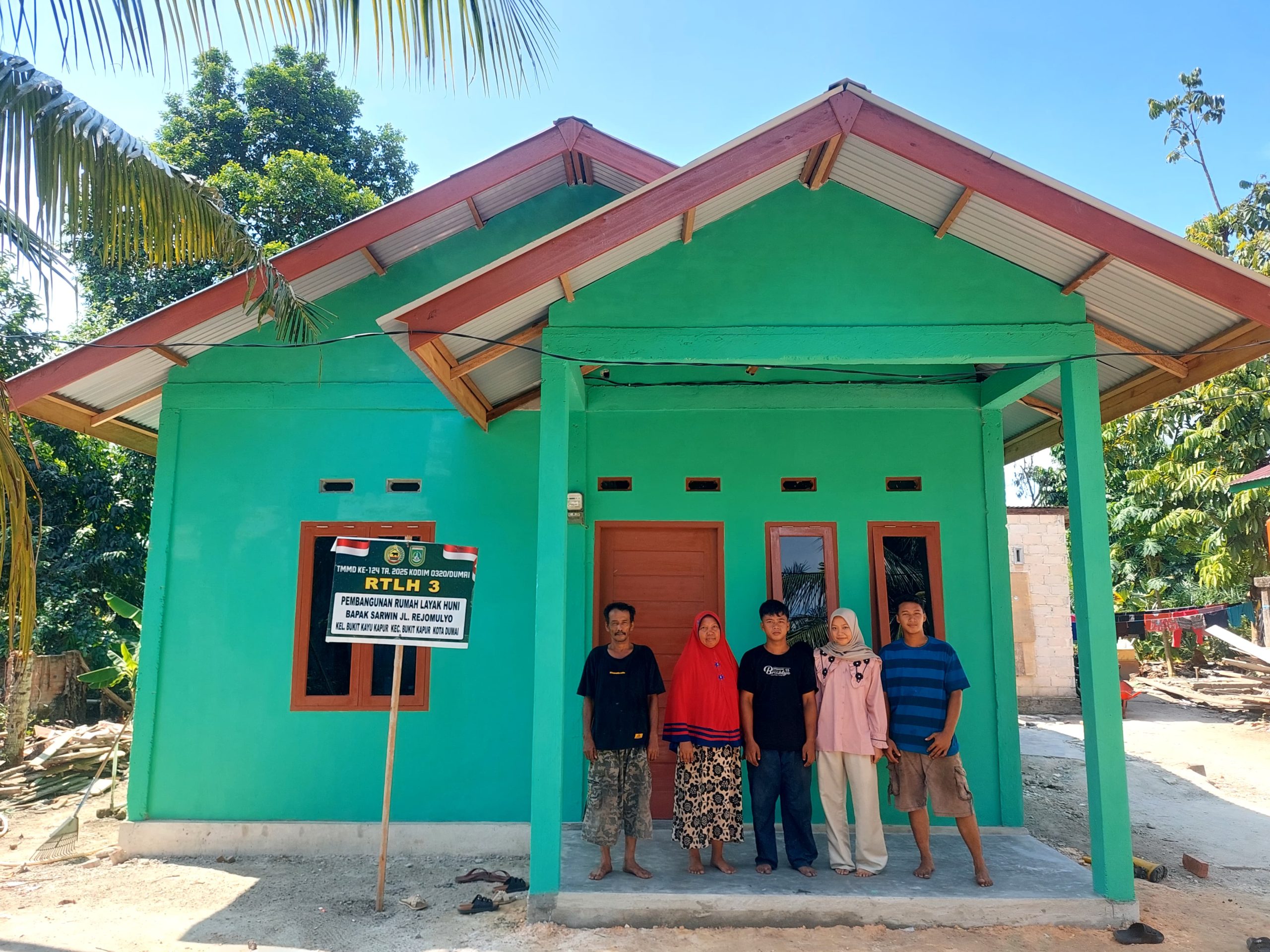 DUMAI (Wasiat24.com) – Sebuah capaian gemilang berhasil ditorehkan oleh Satuan Tugas (Satgas) TNI Manunggal Membangun Desa (TMMD) ke-124 Kodim 0320/Dumai. Menjelang penutupan program TMMD pada 4 Juni 2025 besok, kondisi Rumah Tidak Layak Huni (RTLH) di kelurahan Bukit Kayu Kapur yang menjadi sasaran utama telah mencapai 100 persen penyelesaian. Kabar luar biasa ini menjadi bukti nyata kerja keras dan dedikasi tinggi para prajurit TNI bersama masyarakat.