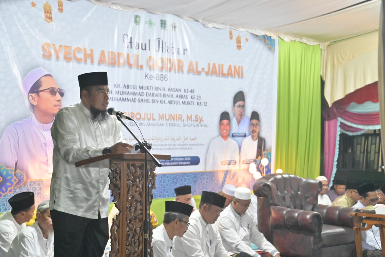 BENGKALIS (Wasiat24.com) – Pemerintah Kabupaten Bengkalis diwakili Asisten Pemerintahan dan Kesejahteraan Rakyat Setda Kabupaten Bengkalis, Andris Wasono, menghadiri acara Haul Syekh Abdul Qodir Al-Jailani Ke-886 Tahun 1447 H/2025 M.