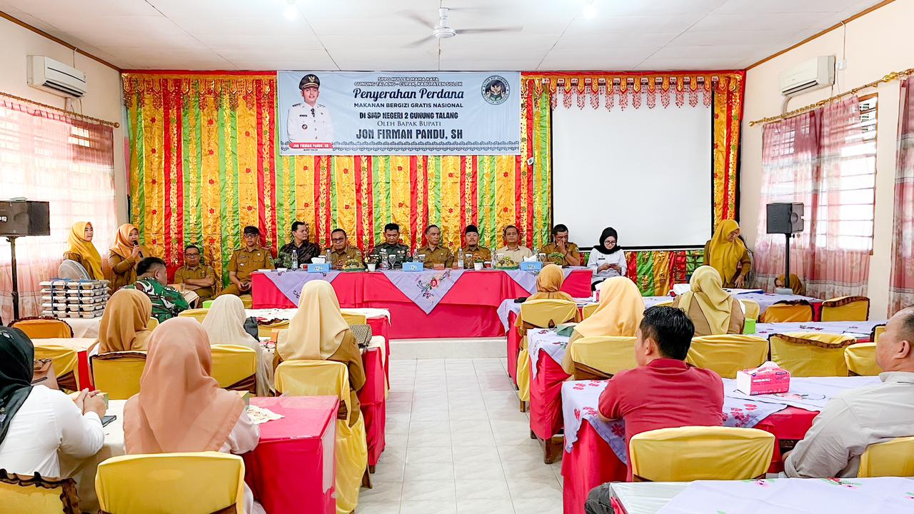 Penyerahan MBG di SMP Negeri 2 Gunung Talang merupakan penyerahan MBG dari Satuan Pelayanan Pemenuhan Gizi (SPPG) Huller Mama Raya Gunung Talang-Cupak. Kegiatan ini menjadi bukti nyata reaalisasi program prioritas pemerintah, yang bertujuan meningkatkan gizi anak-anak dan kelompok yang membutuhkan. Kegiatan ini juga dihadiri langsung oleh Dandim 0309 Solok, Camat Gunung Talang Riswandi Bahauddin, Kepala Disdikpora Elafki, Kepala Dinas Kesehatan Zulhendri, Sekretaris DPPKBP3A Khairul, Kepala Sekolah SMP Negeri 2 Gunung Talang, Yenny beserta jajaran, Perwakilan OPD terkait, serta para undangan lainnya.