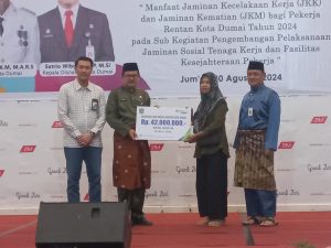“Perlu juga kami sampaikan lagi bahwa Pemerintah Kota Dumai memang tak putus memberikan perhatian khusus kepada para pekerja rentan, termasuk mengikutsertakan para pekerja rentan ini dalam program JKK dan JKM. Kita akan terus berkomitmen untuk bekerja sama dengan BPJS Ketenagakerjaan memperluas coverage BPJS Ketenagakerjaan bagi pekerja rentan, sebagai pencegahan risiko sosial di daerah kita. Pemerintah Kota Dumai melalui Dinas Tenaga Kerja melaksanakan program dimaksud di APBD Tahun 2024 sebanyak 10.000 (sepuluh ribu) pekerja rentan”, jelasnya.