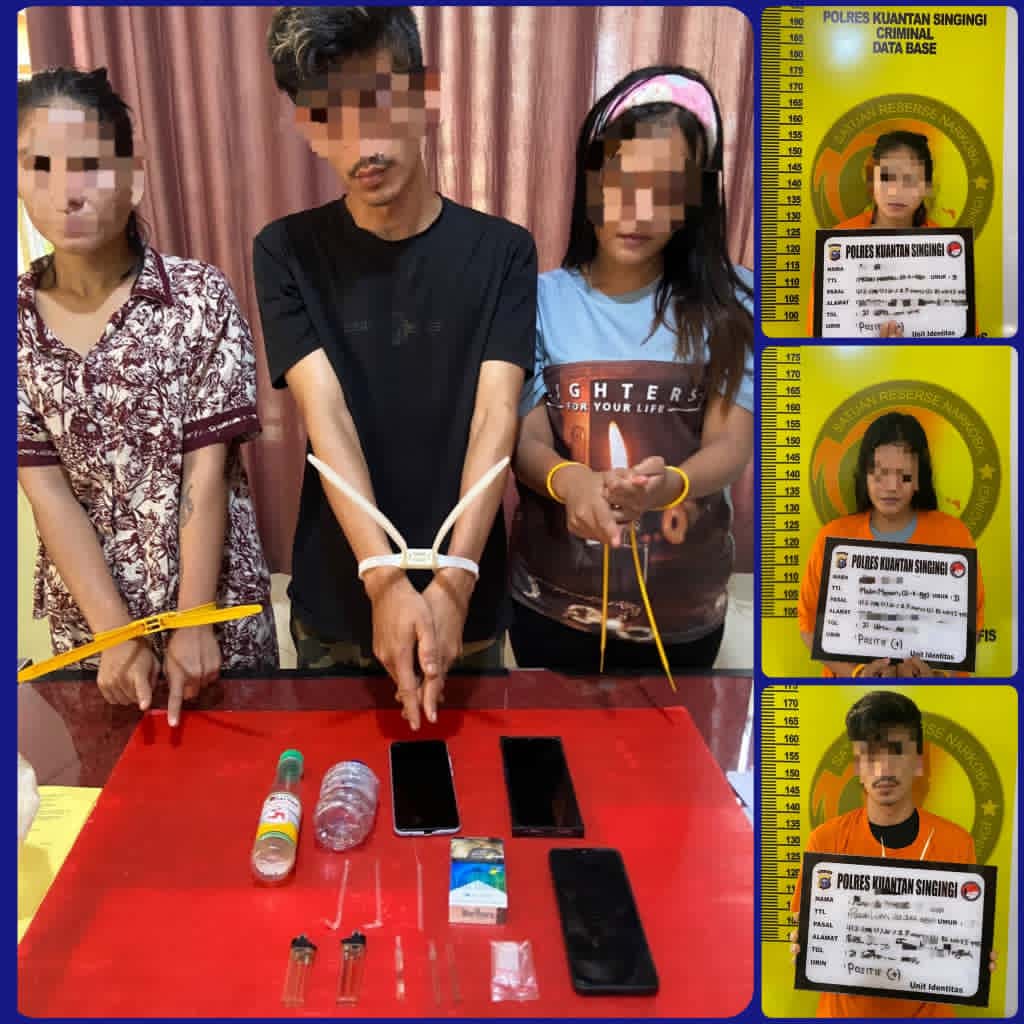 KUANTANSINGINGI (Wasiat24.com) – Tim Mata Elang Polres Kuantan Singingi melalui Satuan Reserse Narkoba berhasil mengungkap kasus penyalahgunaan narkotika di Desa Koto Taluk, Kecamatan Kuantan Tengah. Dalam pengungkapan yang berlangsung, polisi mengamankan tiga orang tersangka bersama barang bukti narkotika jenis sabu dengan berat kotor 1,26 gram. pada Minggu dini hari sekira pukul 02.00 WIB, (21/9/2025).