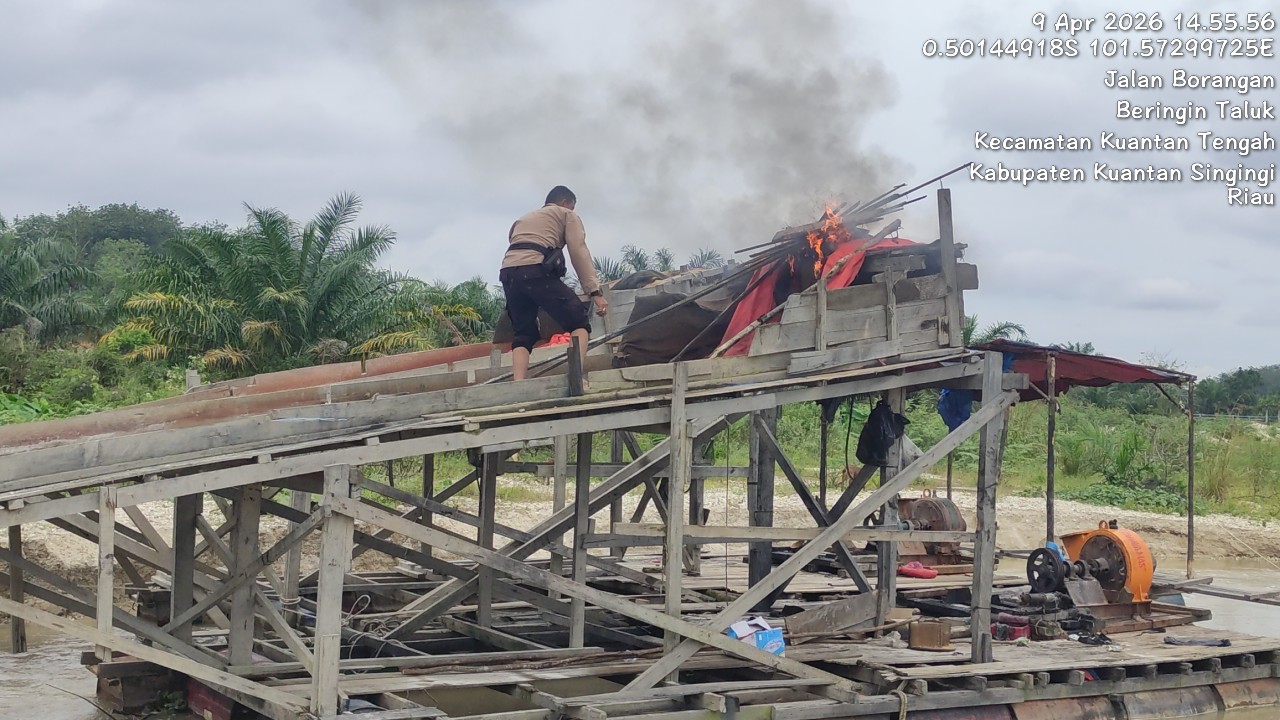 Polsek Kuantan Tengah Tertibkan PETI di Muaro Sentajo, Lima Rakit Dimusnahkan