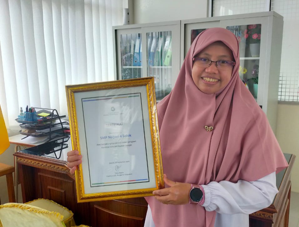 Kepala Sekolah SMPN 4, Hurriyati, S.Pd, M.Pd menyebutkan, dipercayai nya SMPN 4 Kota Solok oleh Google untuk menyandang KSRG ini setelah melalui proses pembinaan dan pendampingan untuk meningkatkan kompetensi pendidik dan tenaga kependidikan serta melengkapi sarana yang diperlukan dalam melaksanakan pembelajaran secara digital semenjak 2022.