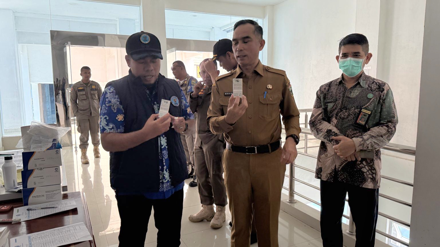 Kegiatan yang berlangsung tanpa pemberitahuan sebelumnya ini dilakukan sebagai langkah preventif sekaligus bentuk pengawasan internal. Sejumlah pejabat dan staf dari berbagai dinas tampak mengikuti proses pemeriksaan dengan tertib di bawah pengawasan tim medis dan petugas terkait.