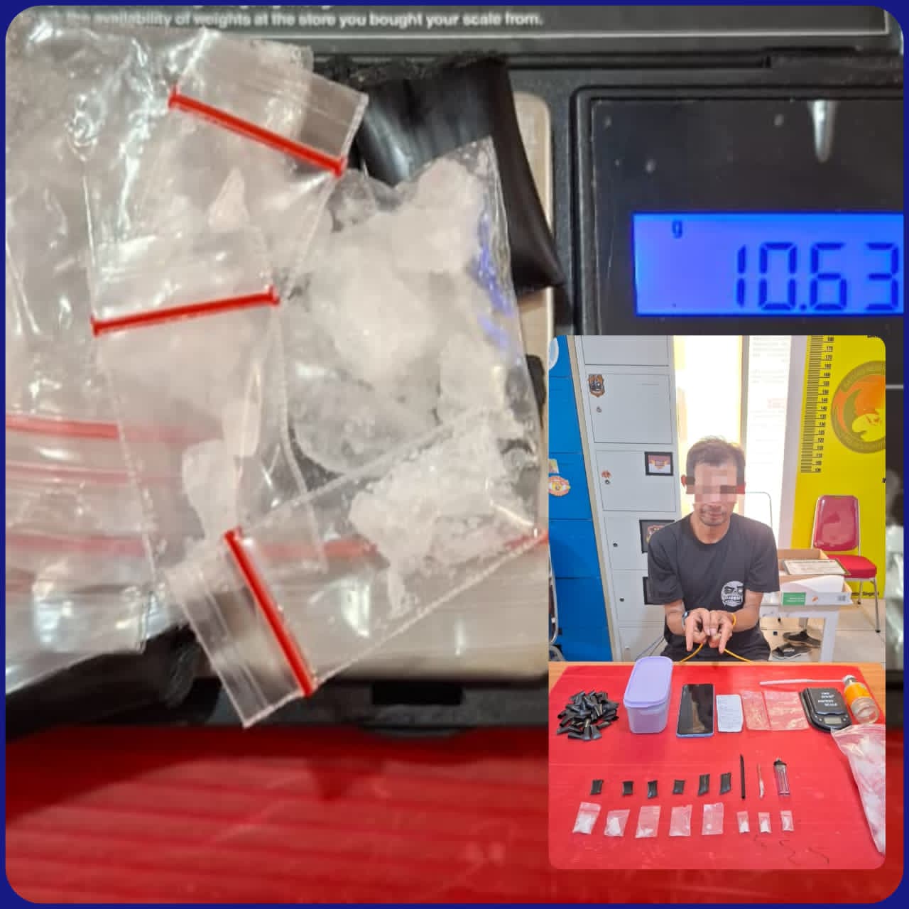 Dari hasil pemeriksaan terhadap handphone tersangka, ditemukan foto denah lokasi tempat tersangka meletakkan paket sabu. Petugas kemudian melakukan penyisiran di lokasi tersebut dan kembali menemukan tiga paket sabu yang disembunyikan oleh tersangka.
