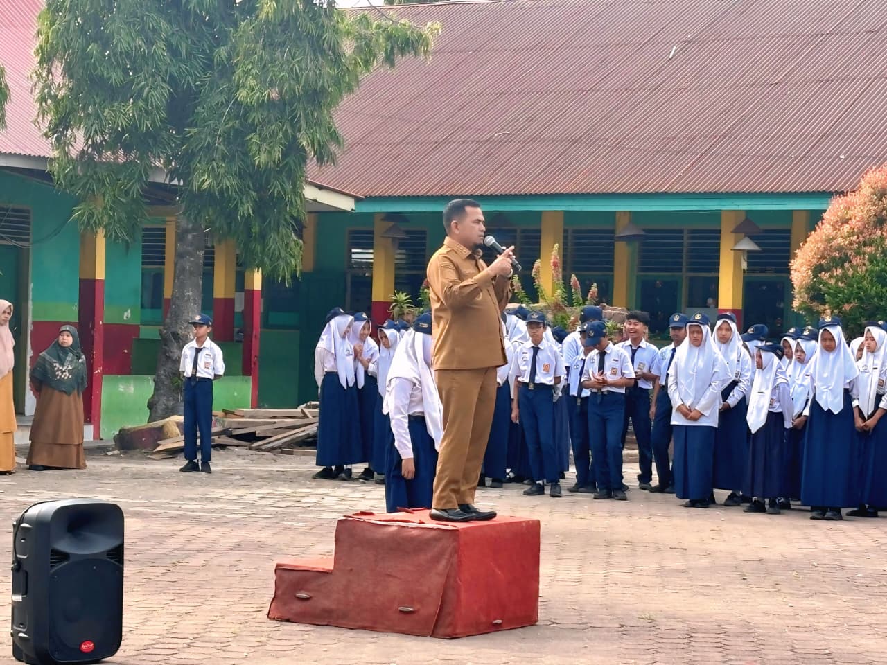 “Alhamdulillah pagi ini Allah memberikan kita nikmat besar, salah satunya kesempatan untuk menuntut ilmu. Kami doakan ananda sekalian menjadi generasi sukses di masa depan, bahkan ada yang kelak menjadi bupati, gubernur, menteri, atau presiden,” ujarnya di hadapan ratusan siswa dan guru.