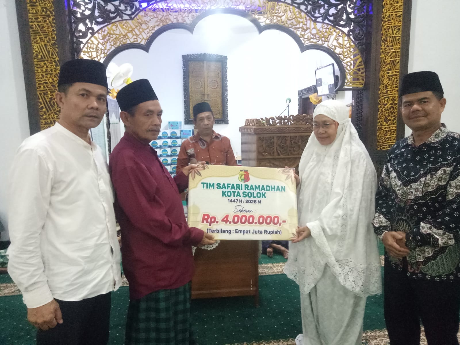 Pada kesempatan itu, Ketua tim 12 juga menyerahkan bantuan dari pemerintah kota Solok sebesar 4 juta rupiah permesjid yang ada di kota Solok.